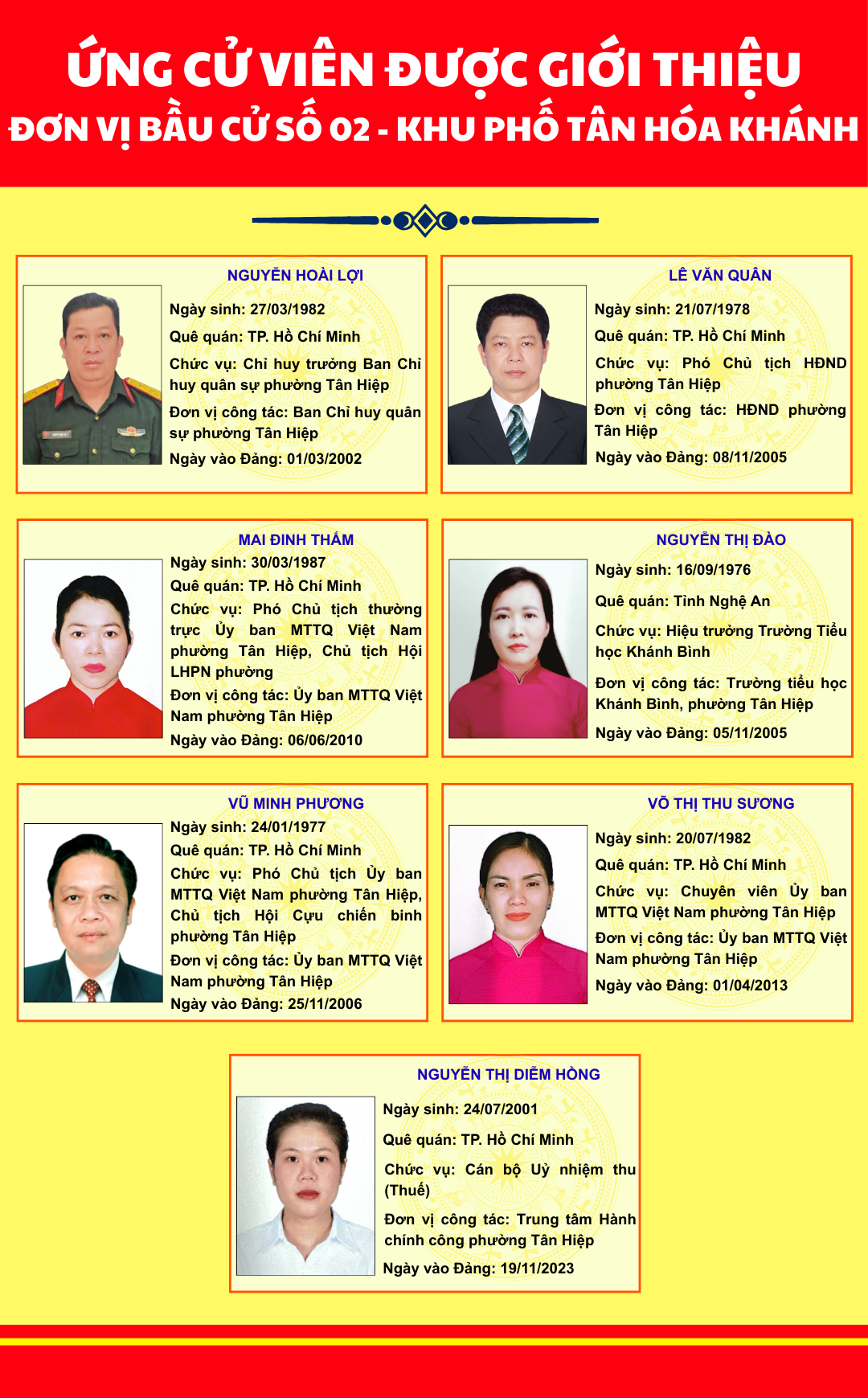 DANH SÁCH ỨNG CỬ VIÊN ĐƯỢC GIỚI THIỆU KHU VỰC SỐ 02 KHU PHỐ TÂN HÓA KHÁNH