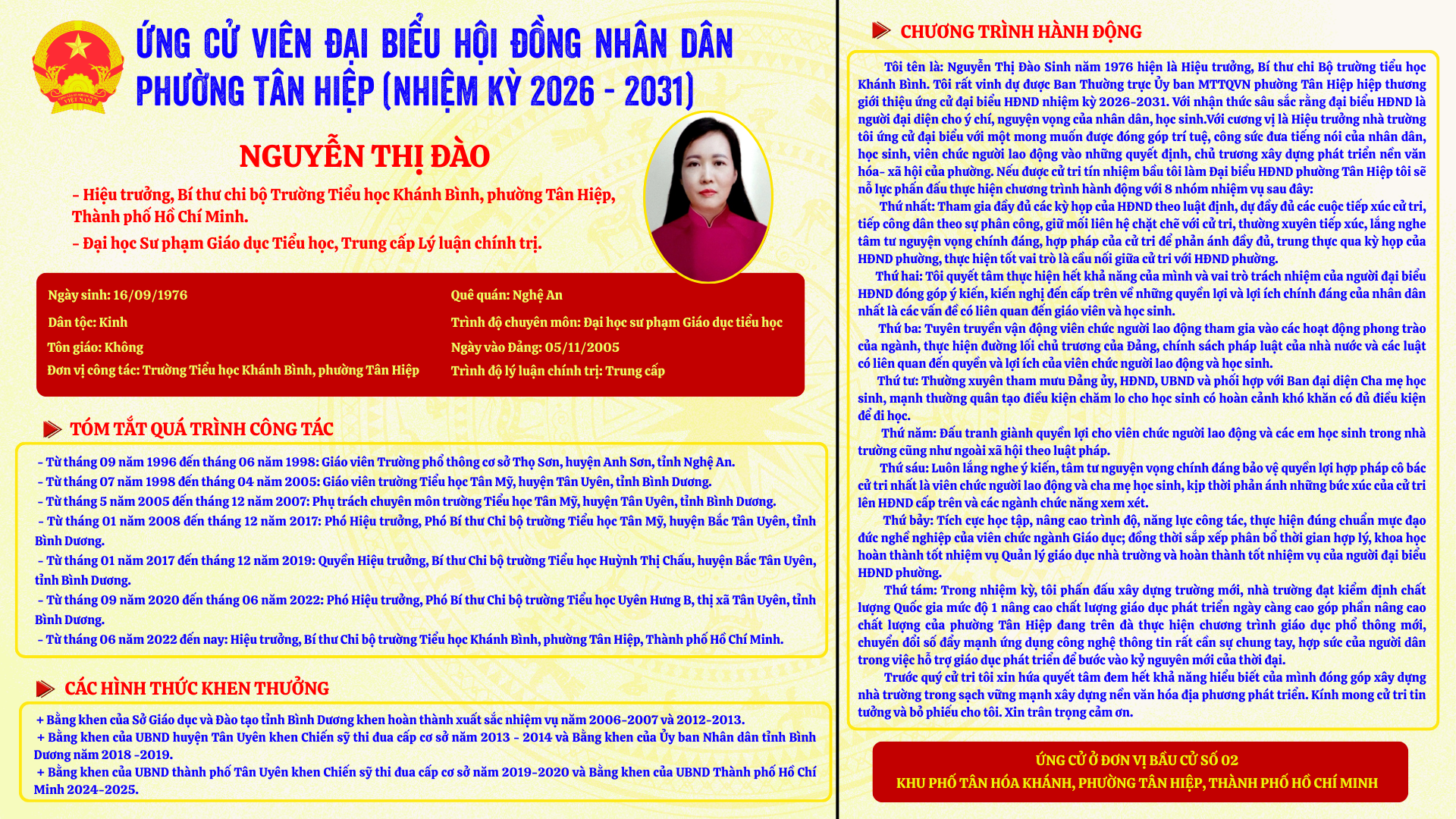 Người ứng cử khu vực Số 02 Khu phố Tân Hóa Khánh