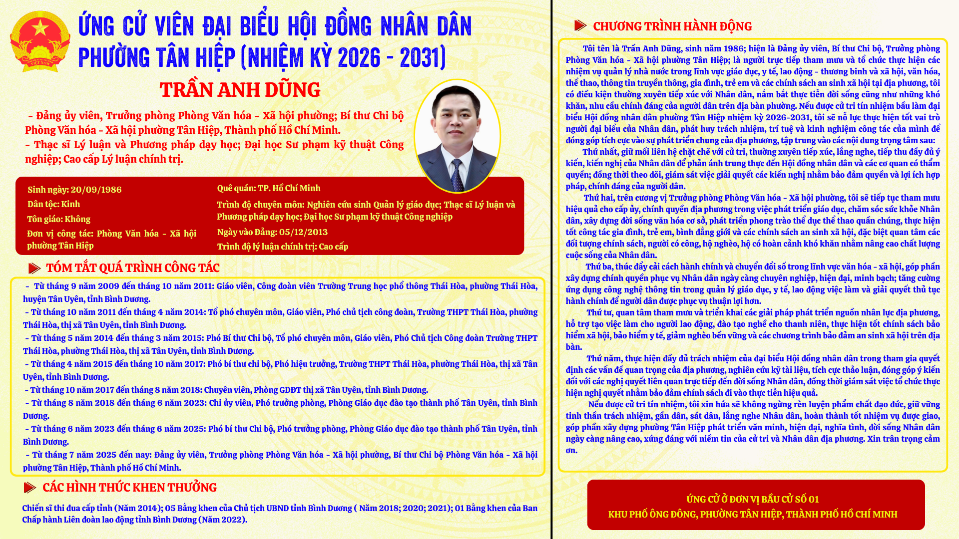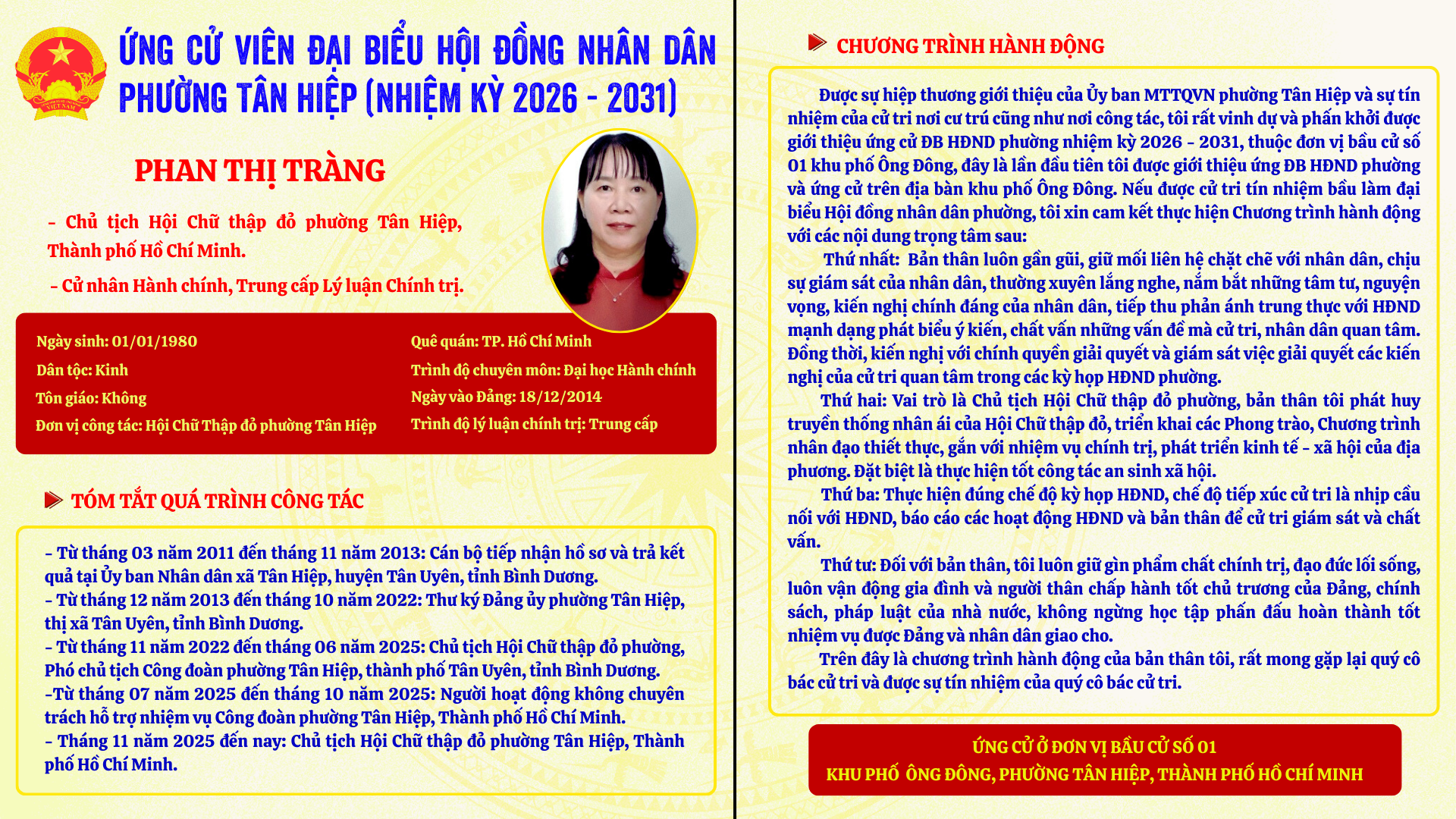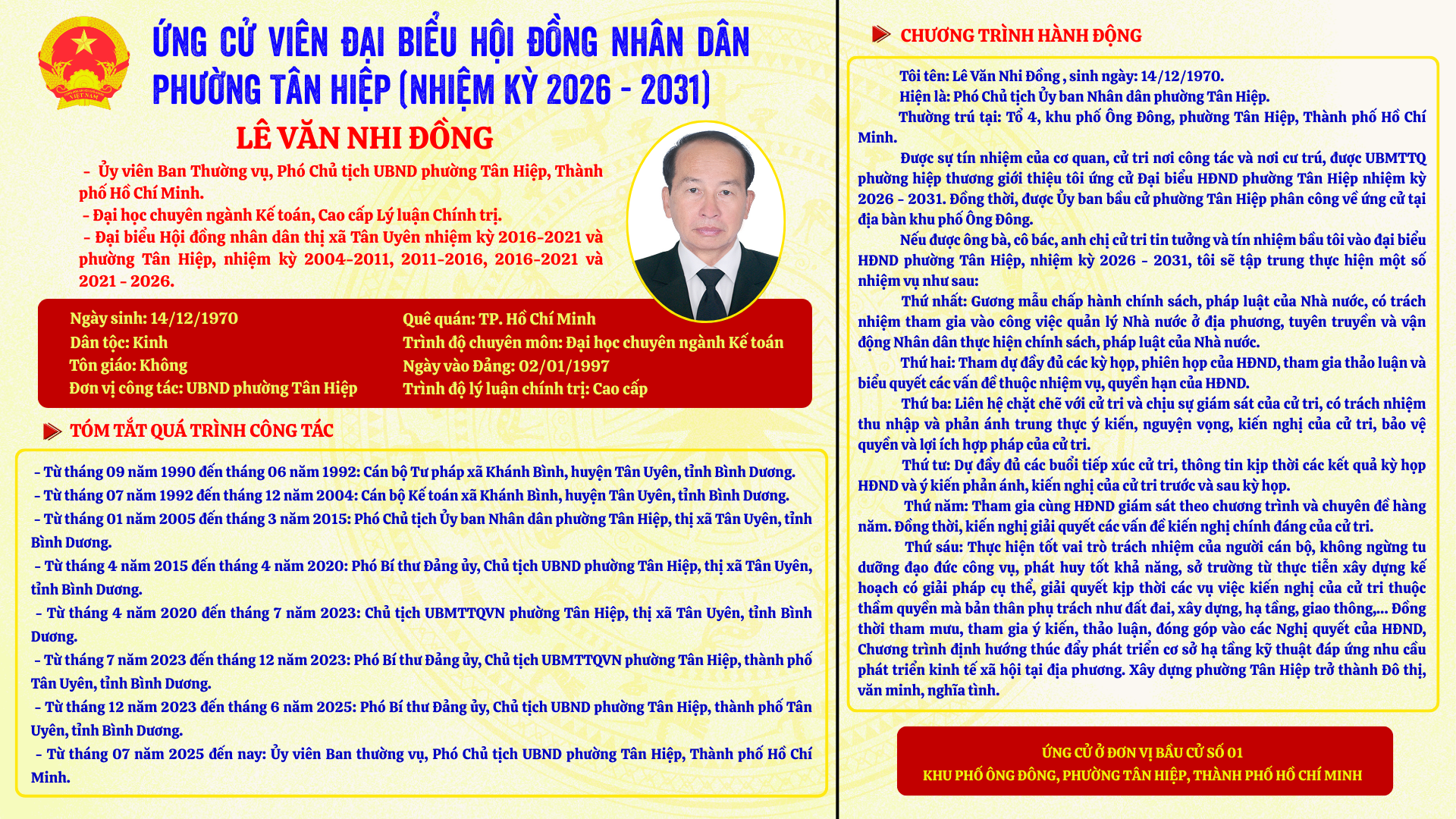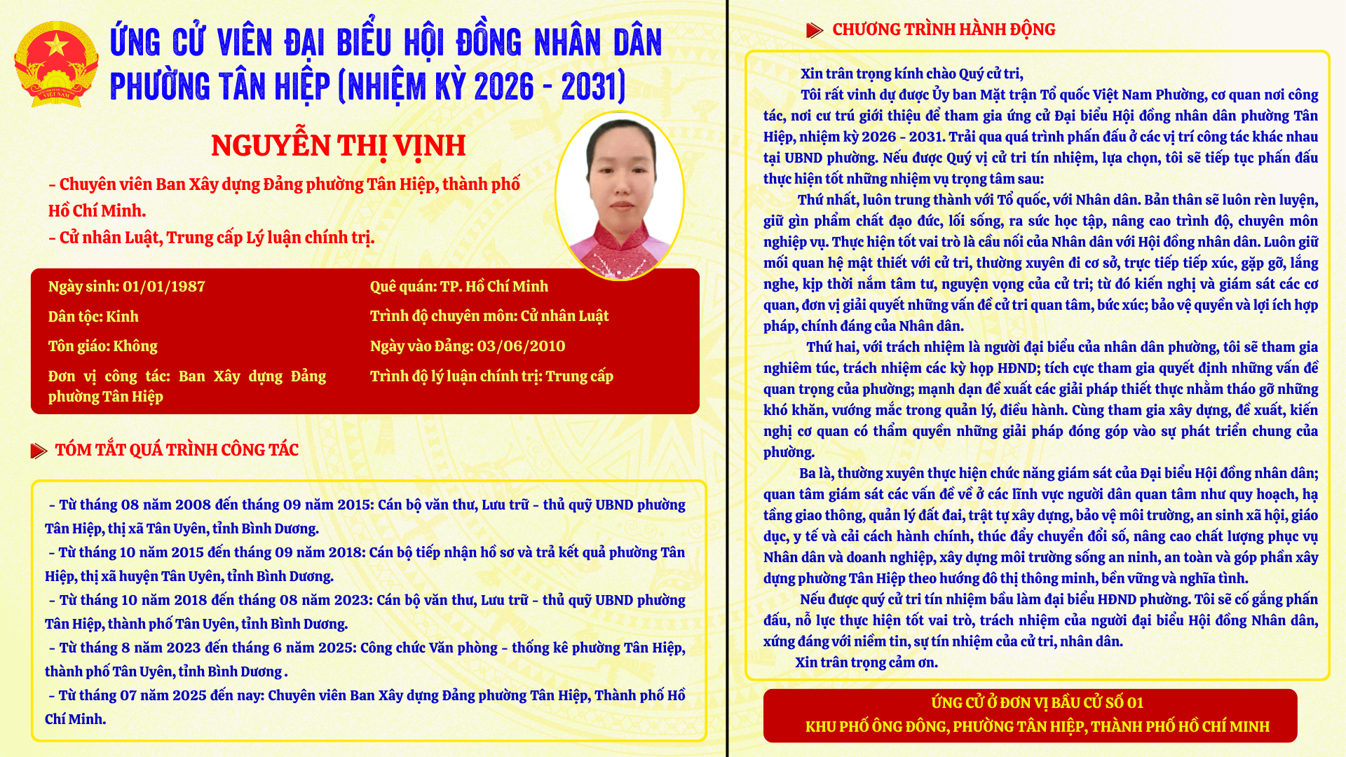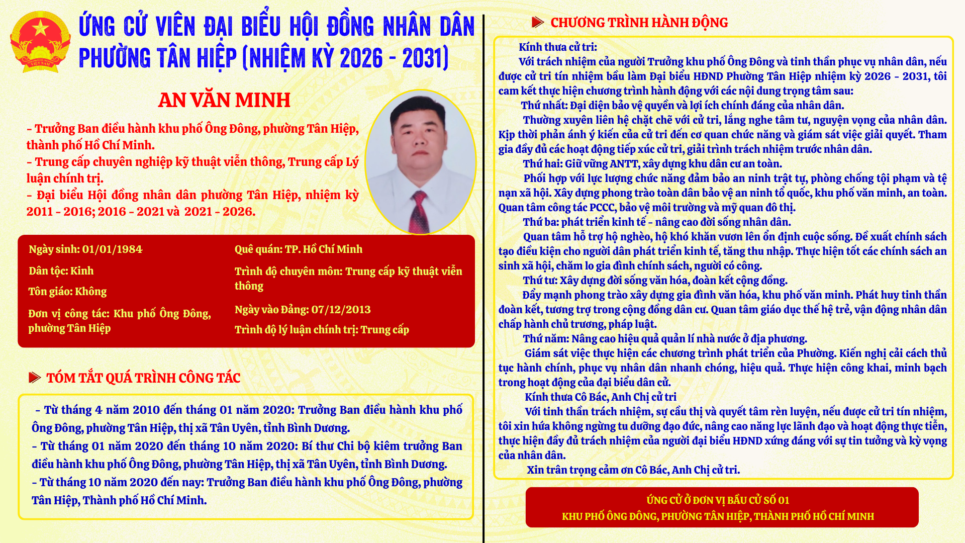 Người ứng cử khu vực Số 01 Khu phố Ông Đông
