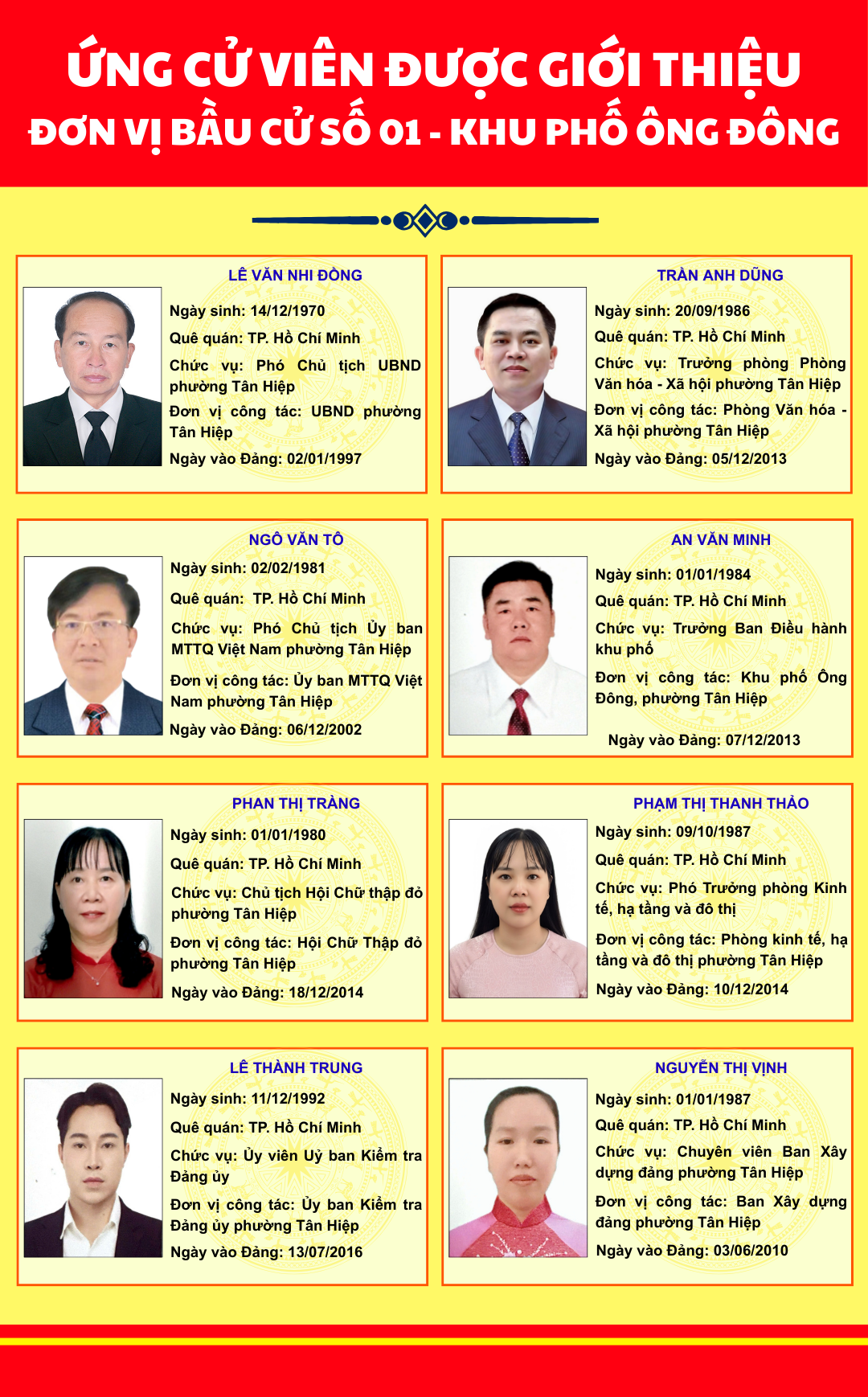 DANH SÁCH ỨNG CỬ VIÊN ĐƯỢC GIỚI THIỆU KHU VỰC SỐ 01 KHU PHỐ ÔNG ĐÔNG